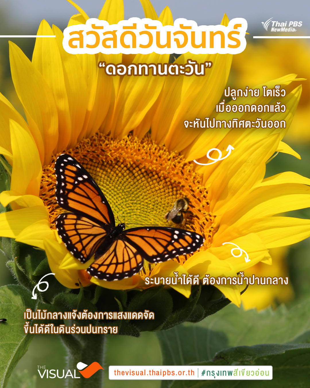 ดอกทานตะวัน ไม้กลางแจ้งต้องการแสงแดดจัด ขึ้นได้ดีในดินร่วนปนทราย ระบายน้ำได้ดี