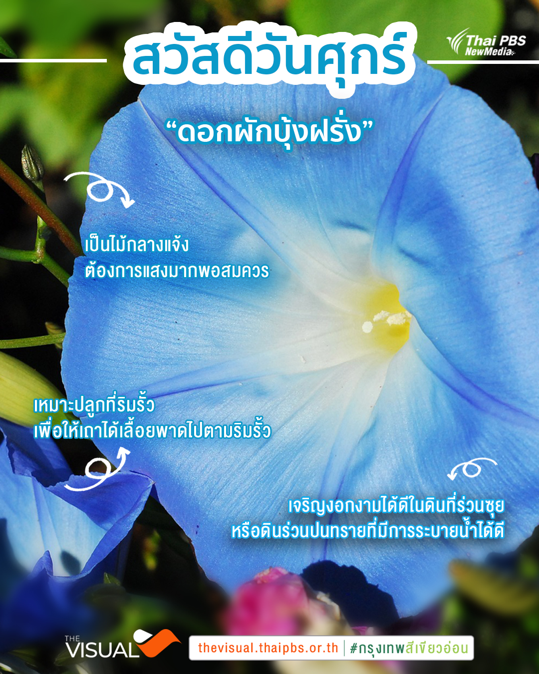 ดอกผักบุ้งฝรั่ง เหมาะที่ปลูกริมรั้ว เพื่อให้เถาได้เลื้อยพาดไปตามริมรั้ว